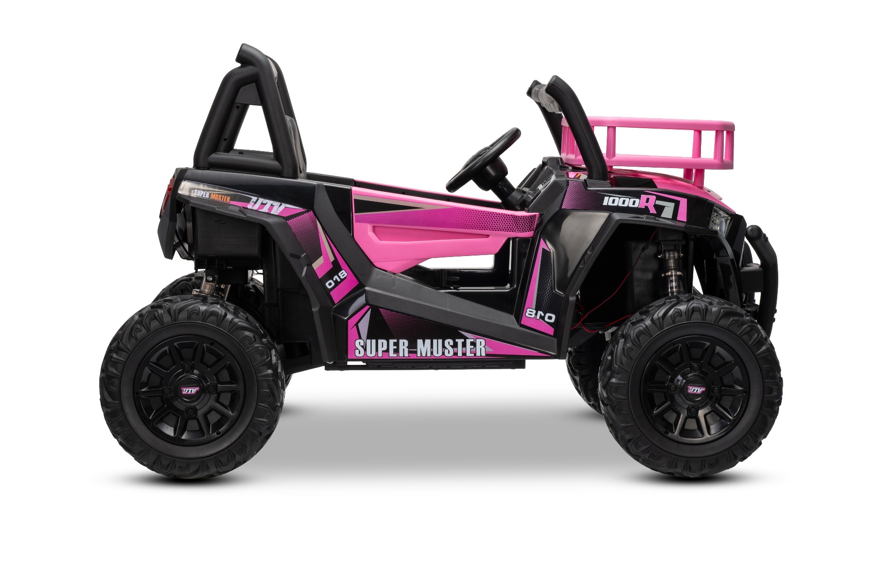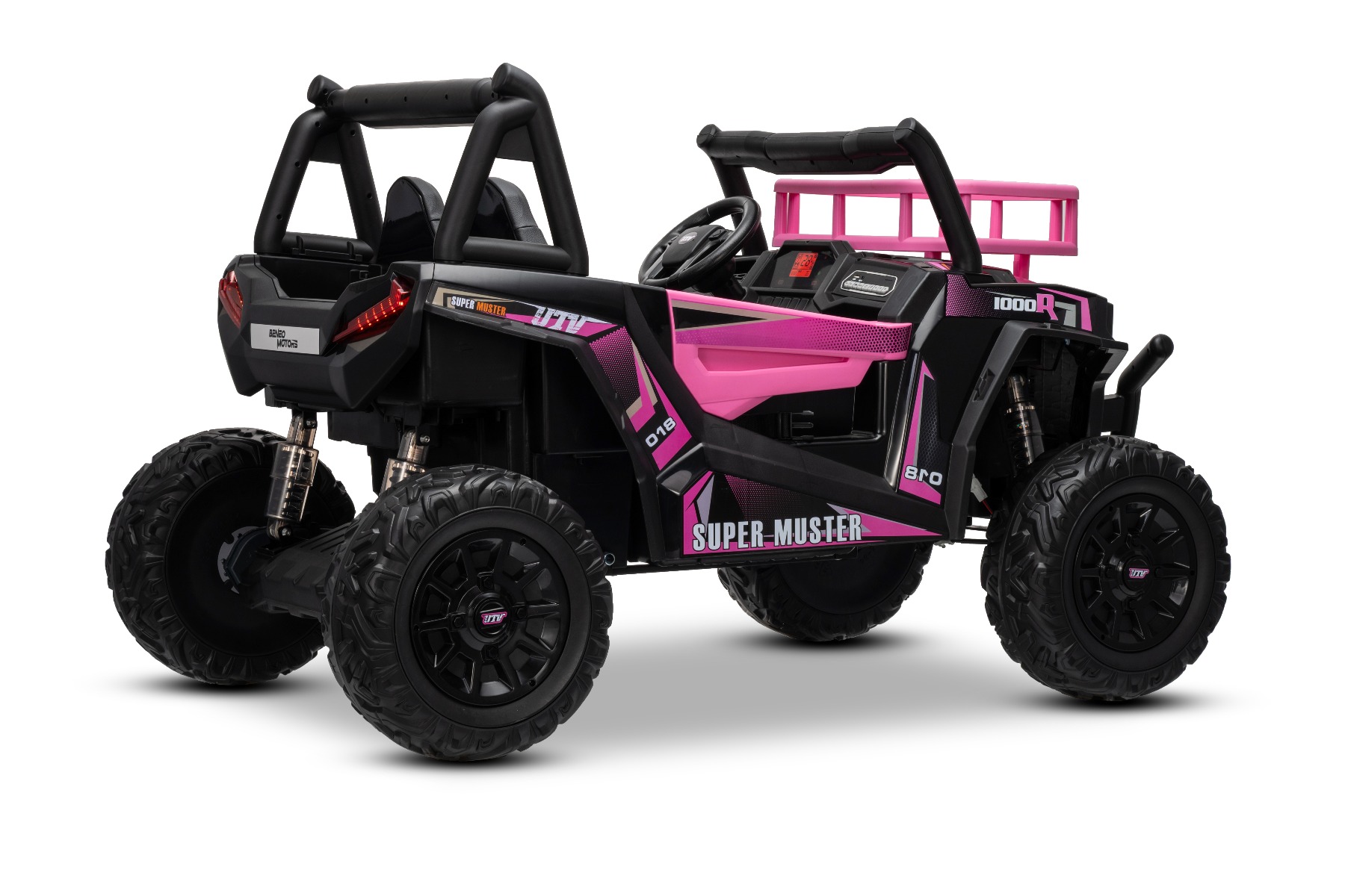 Dječji auto na akumulator UTV 24V, Roza, dvosjed, 2 x 200 W motor, Litijeva baterija, EVA kotači, ovjes osovine, električna kočnica, tapecirano sjedalo, 2.4 GHz daljinski upravljač, USB, AUX