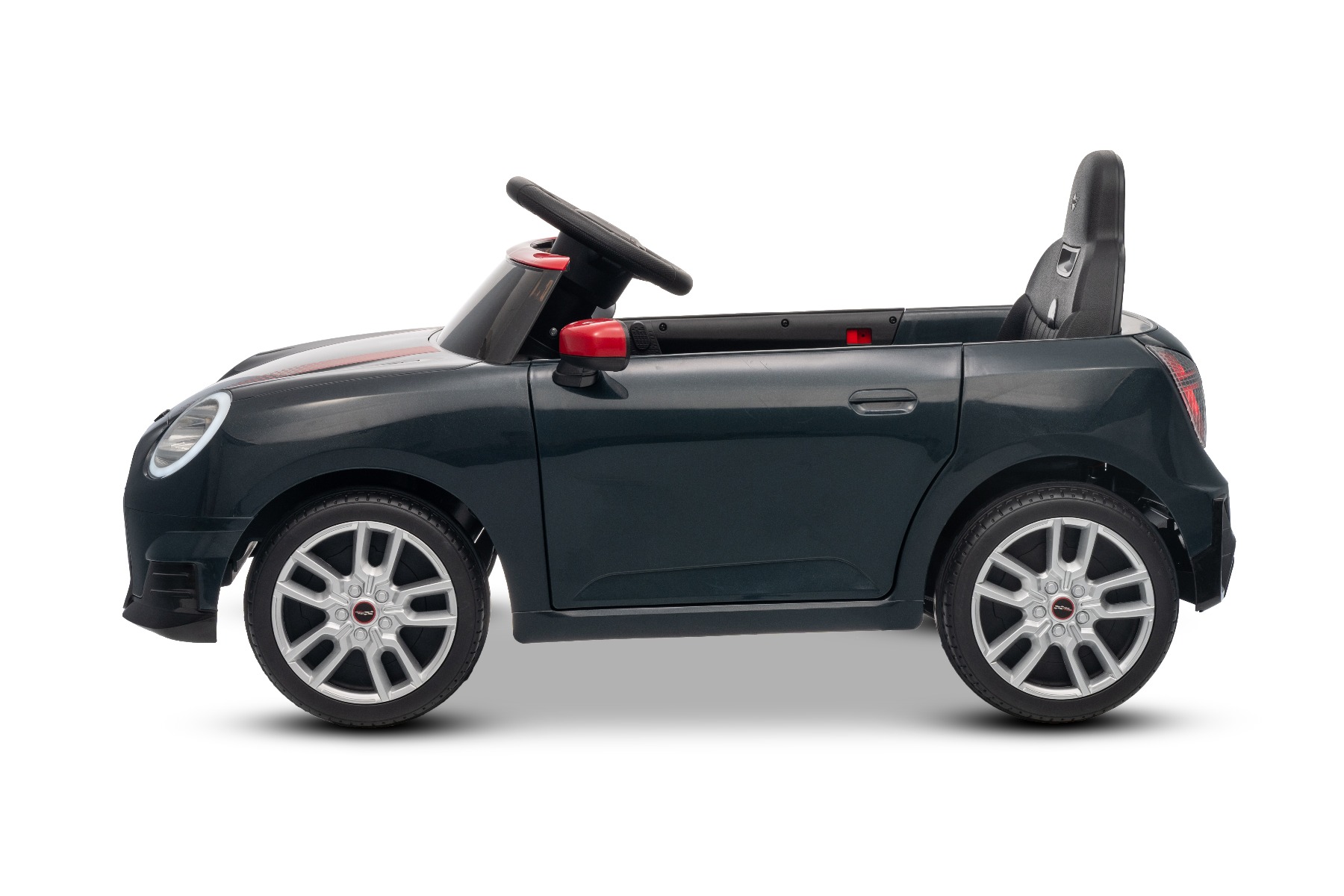 Stilski električni automobil s legendarnim MINI dizajnom. Dvoja otvarajuća vrata omogućuju udobno ulazak i izlazak. Nakon uključivanja prekidača model imitira zvuk pokretanja motora, svijetle prednja i stražnja LED svjetla. Tu su i zvučni efekti poput sirene, zvuka vožnje, pjesama i melodija. Dostupan je USB ulaz i Bluetooth veza. Glasnoća se podešava izravno putem ugrađenog MP3 playera.