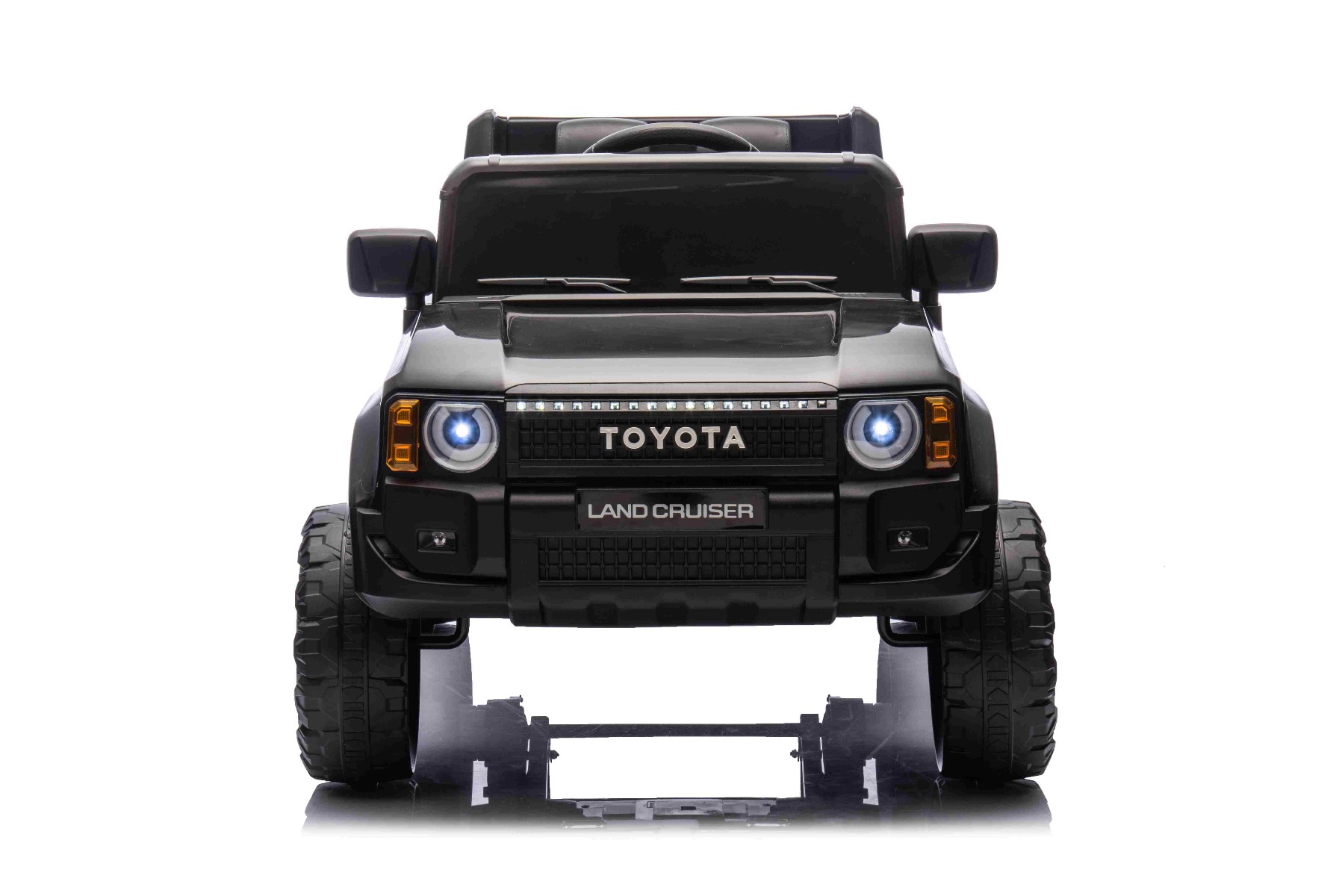 Električni autić Toyota Landcruiser 12V, crni, široko jedno sjedalo, 2.4 GHz daljinski upravljač, USB / AUX ulaz, Bluetooth, ovjes, litijeva baterija, LED svjetla, 2 X 25W motor, ORIGINALNA registracija