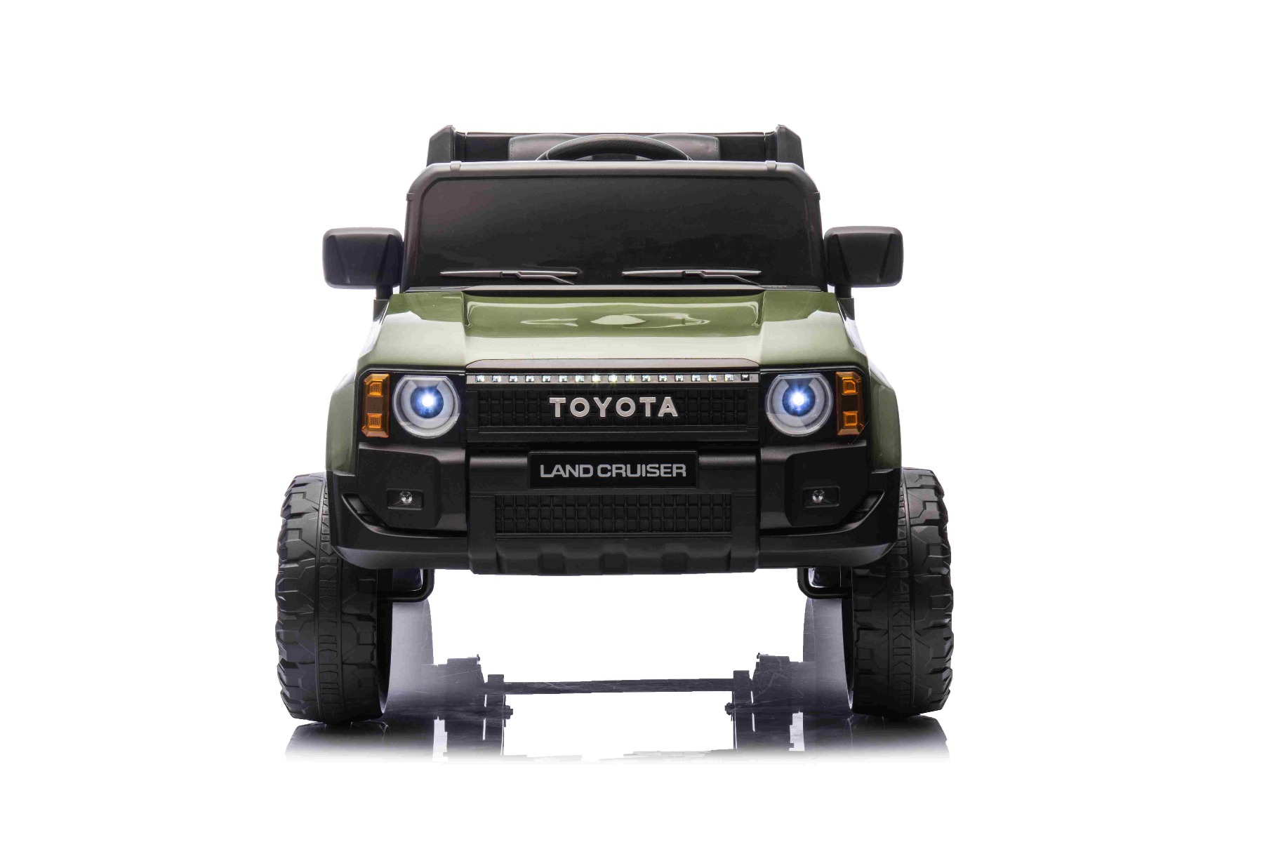 Električni autić Toyota Landcruiser 12V, vojno zelena boja, široko jedno sjedalo, 2.4 GHz daljinski upravljač, USB / AUX ulaz, Bluetooth, ovjes, litijeva baterija, LED svjetla, 2 X 25W motor, ORIGINALNA registracija