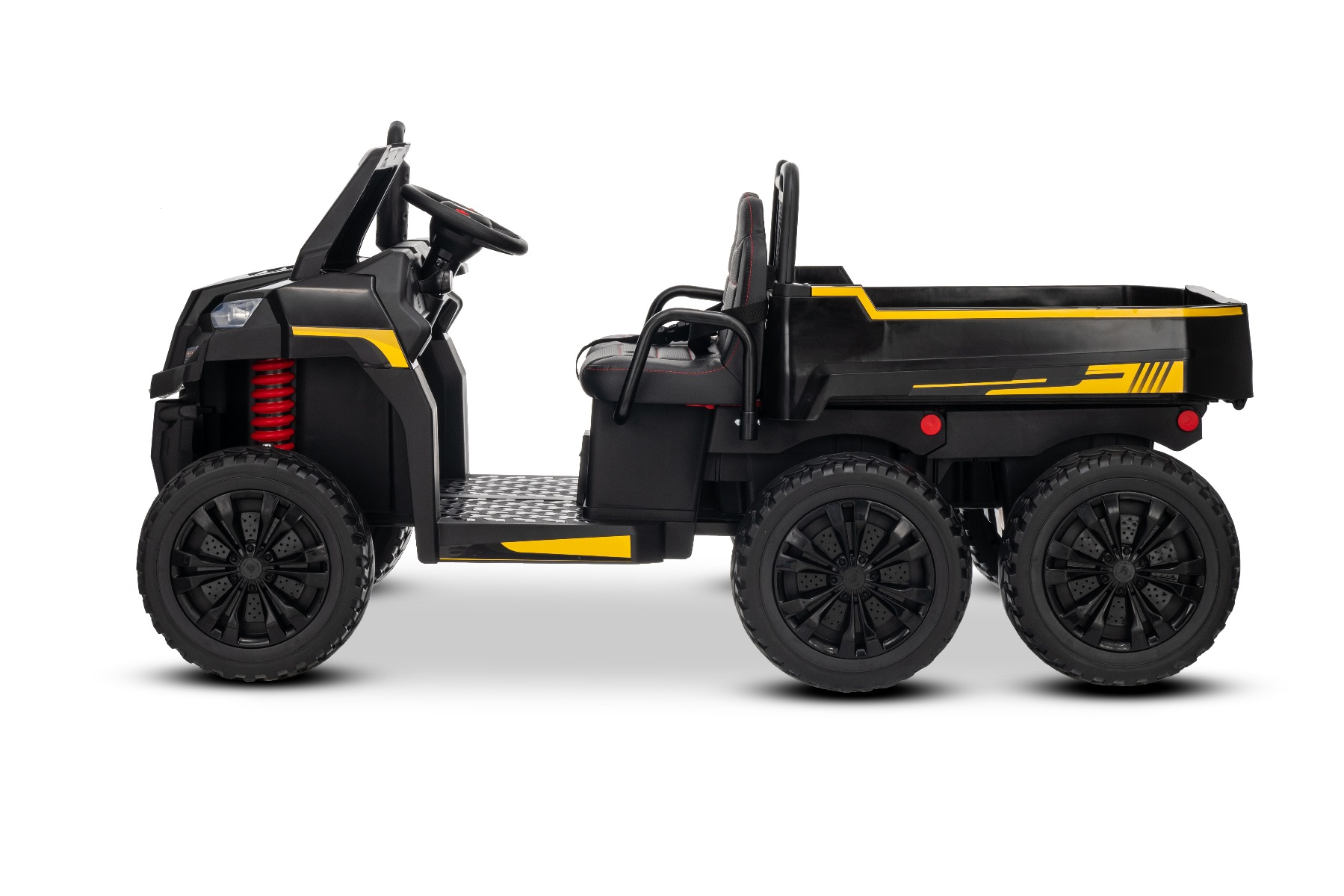 Električni poljoprivredni automobil RIDER 6X6 24V s pogonom na sva četiri kotača 4X 200W, dvosjed, crni, litijeva baterija, EVA kotači, dvostruko sjedalo od umjetne kože, ovjesne osovine, 2,4 GHz daljinski upravljač, MP3 player s USB/AUX ulazom, Bluetooth