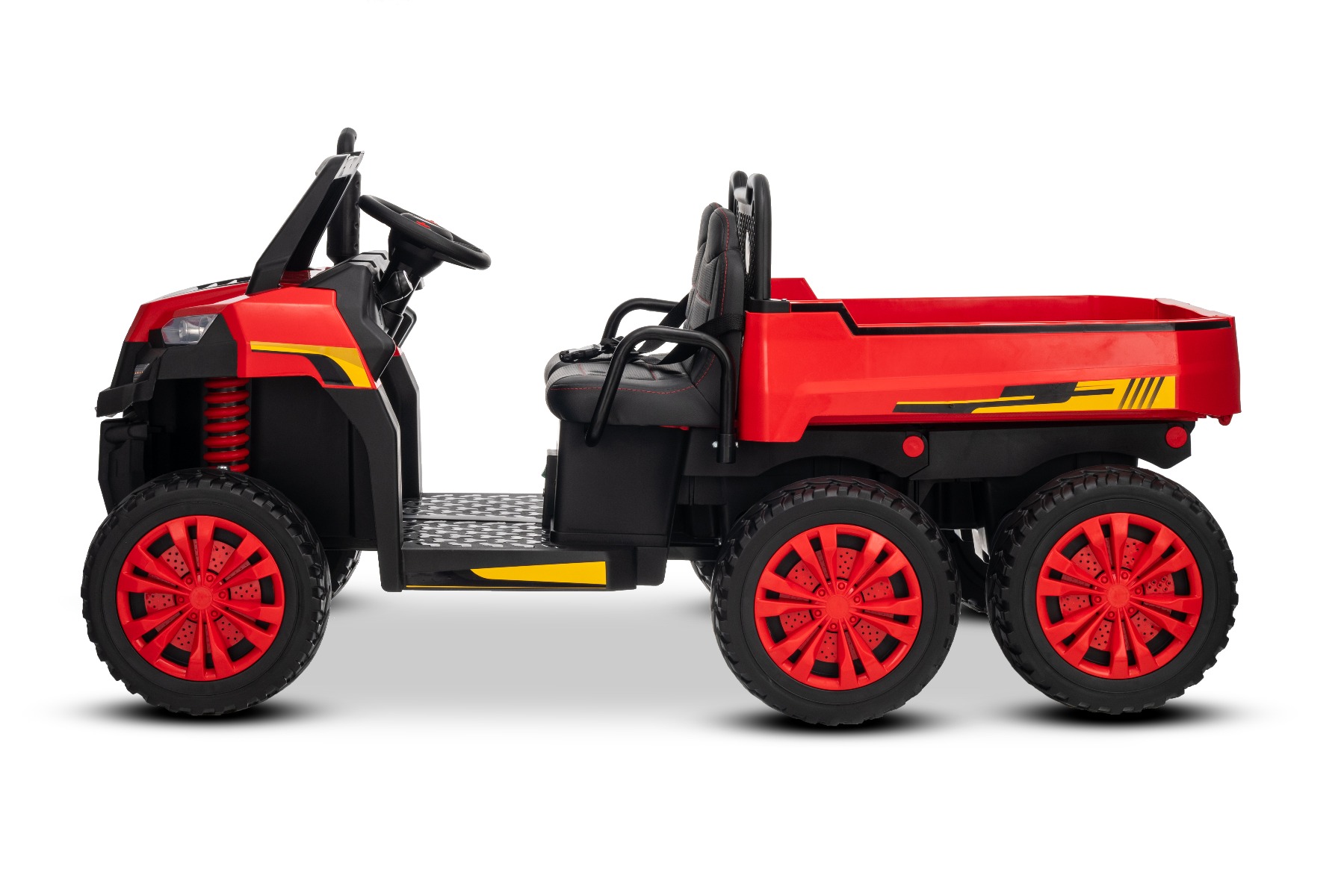 Električni poljoprivredni automobil RIDER 6X6 24V s pogonom na sva četiri kotača 4X 200W, Dvosjed, crveni, Litijeva baterija, EVA kotači, Dvostruko sjedalo od umjetne kože, Ovjesne osovine, Daljinski upravljač 2,4 GHz, MP3 player s USB/AUX, Bluetooth