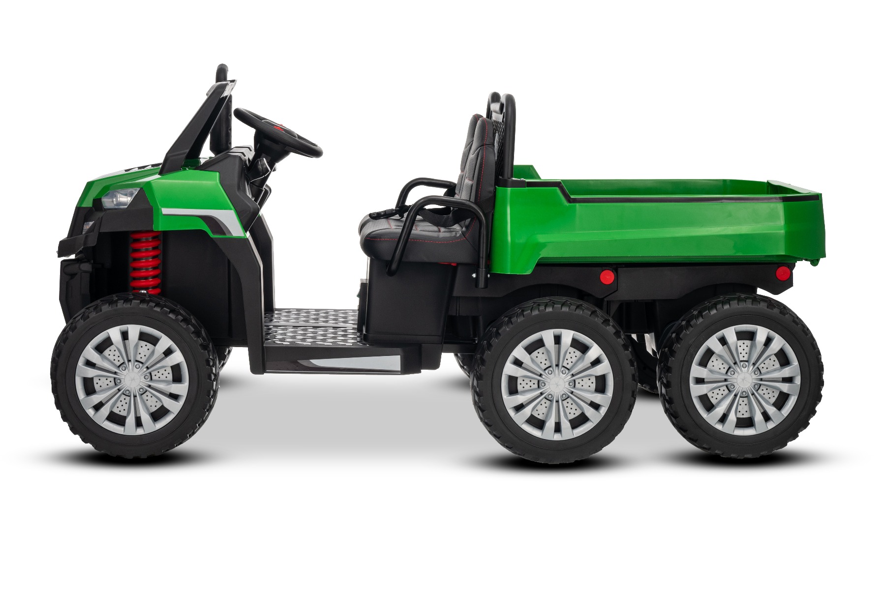 Električni poljoprivredni automobil RIDER 6X6 24V s pogonom na sva četiri kotača 4X 200W, Dvosjed, zeleni, Litijeva baterija, EVA kotači, Dvostruko sjedalo od umjetne kože, Ovjesne osovine, Daljinski upravljač 2,4 GHz, MP3 player s USB/AUX, Bluetooth